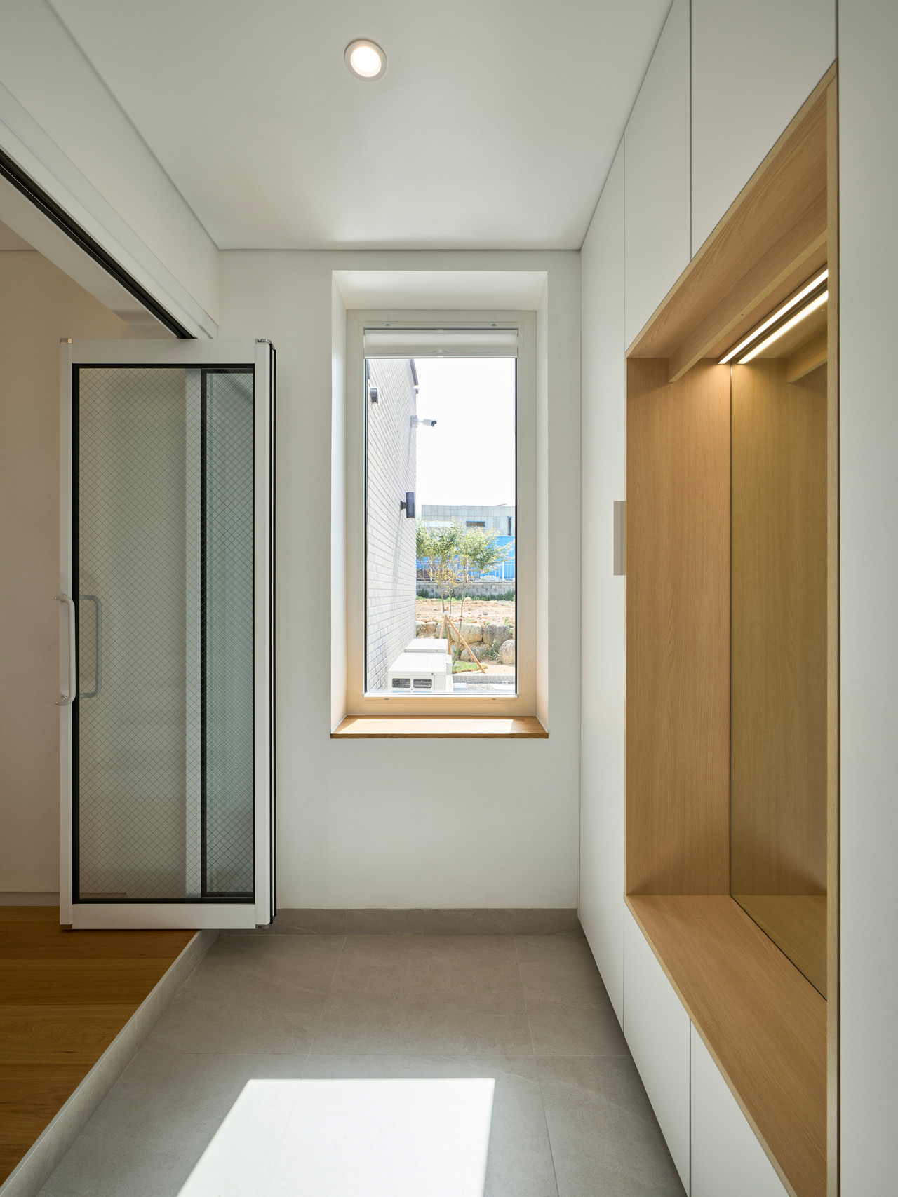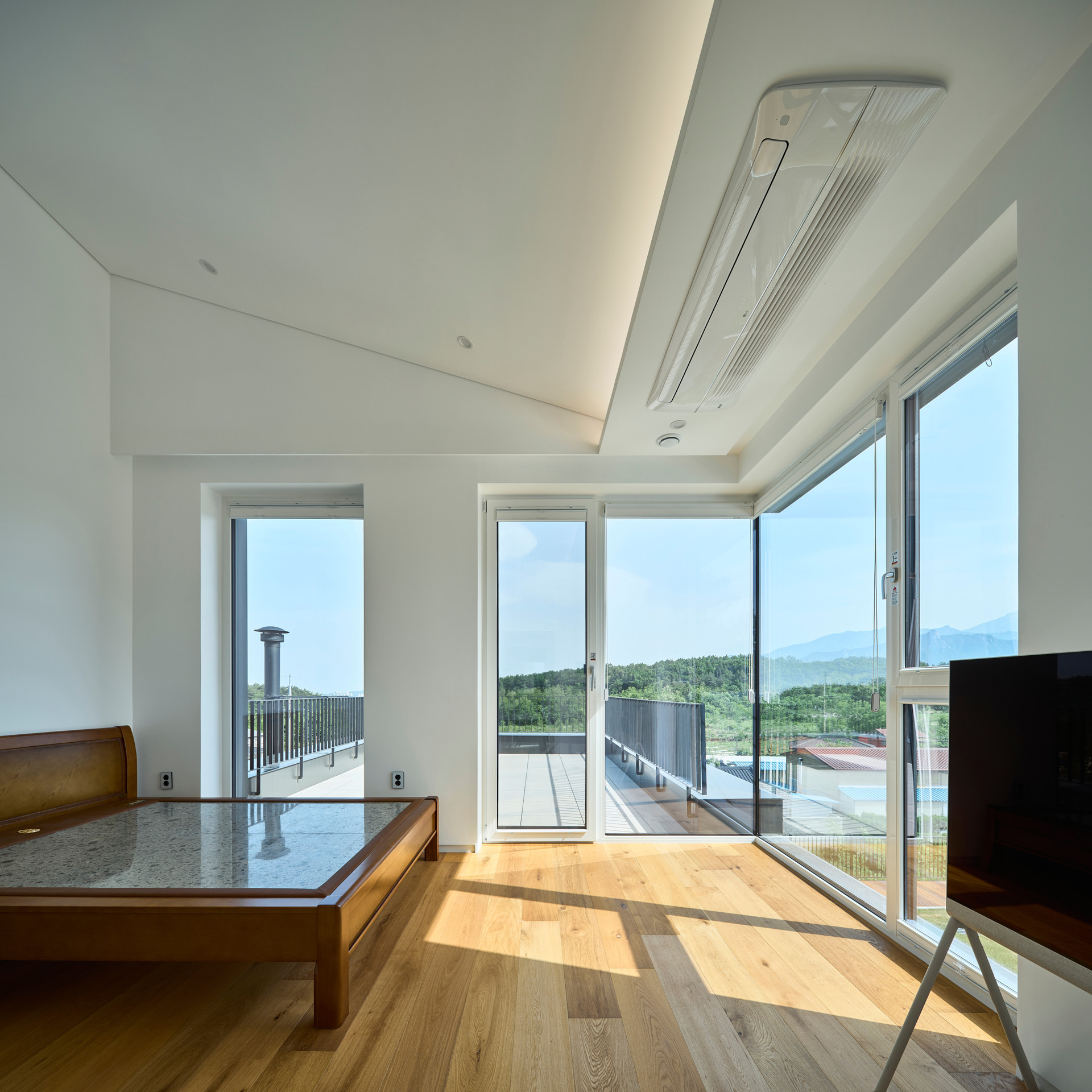 설계를 진행하며 서울에서의 복잡한 일상을 뒤로하고 도착한 전원속의 집에서 자연과 어떻게 관계 맺어야 하는가가 주요한 고민이었다. 대지에서 경험할 수 있는 자연과의 접점을 위해 주요한 곳마다 창을 설치하고 코너창을 통해 조망을 극대화하였다. 공간을 이동하며 보이는 곳에 적절히 창을 배치하여 동선 상에서 자연을 느끼고 시선의 끝에서 내부공간이 외부로 확장될 수 있도록 의도하였다.